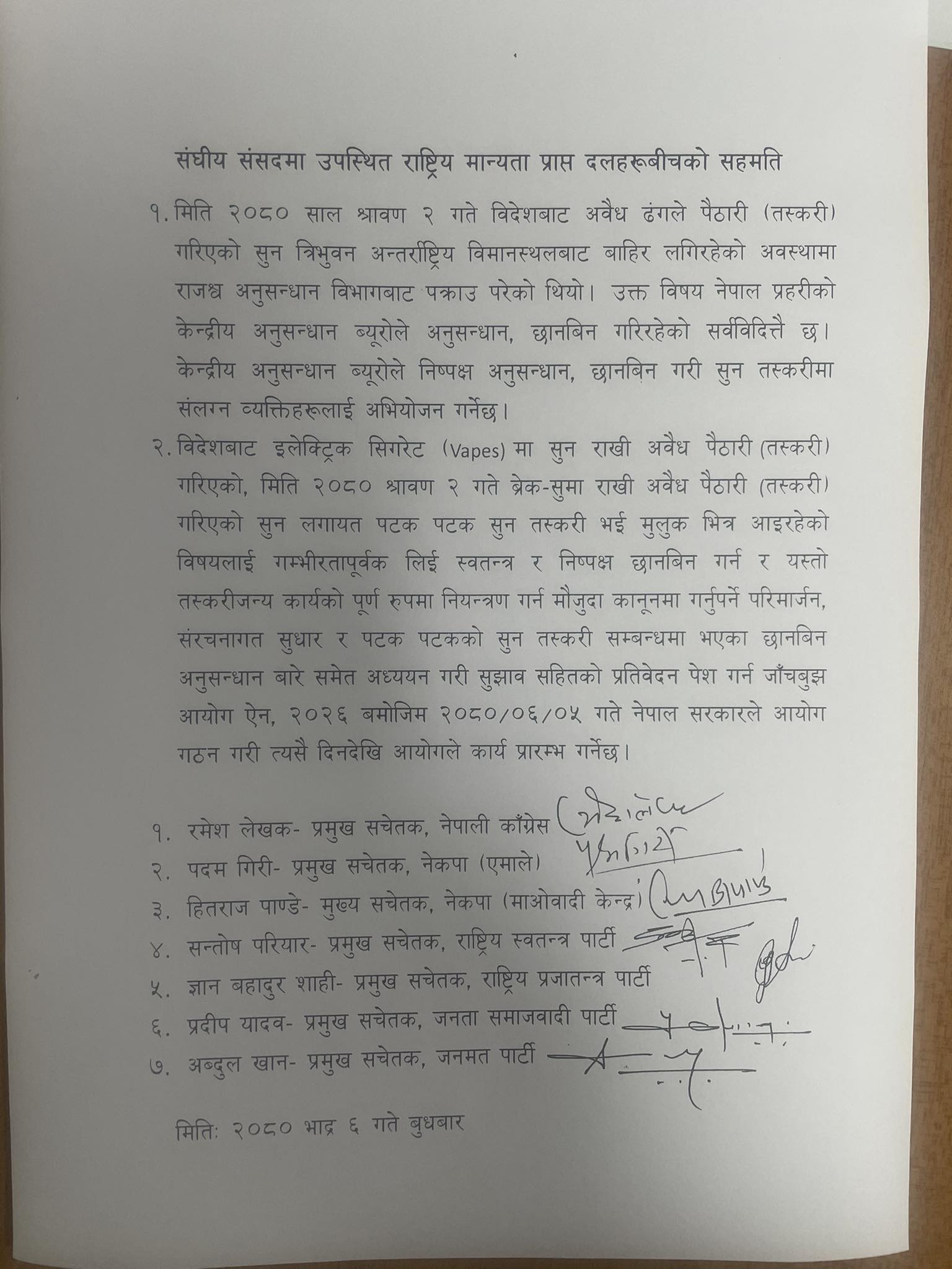 संसदको गतिरोध खोल्न शीर्ष दल सहमत, यस्तो छ सहमति (सहमतिसहित)