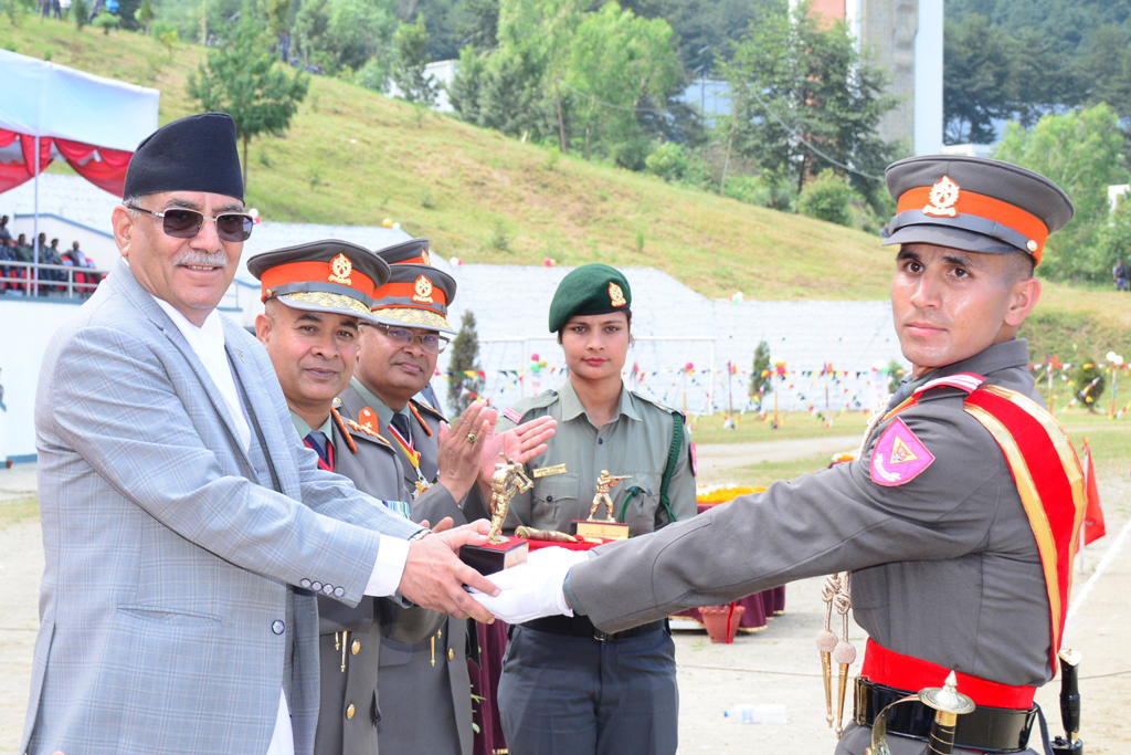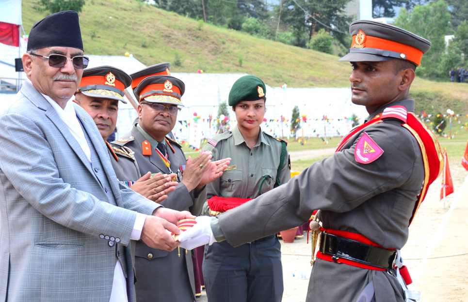 प्रधानमन्त्री दाहालले तालिममा सर्वप्रथम भएका सशस्त्र प्रहरी निरीक्षक रोशन घिमिरेलाई खुकुरी प्रदान गर्नुकासाथै कवाज, शारीरिक सहिष्णुता र चाँदमारीतर्फ उत्कृष्ट प्रशिक्षार्थीहरुलाई समेत पुरस्कार प्रदान गरे । तालिममा कवाजतर्फ सशस्त्र प्रहरी निरीक्षक ज्ञानचन्द्र पराजुली, शारिरीक सहिष्णुतातर्फ सशस्त्र प्रहरी निरीक्षक पुष्कर बहादुर बम र चाँदमारीतर्फ सशस्त्र प्रहरी निरीक्षक एजन खड्का उत्कृष्ट भएका छन् ।