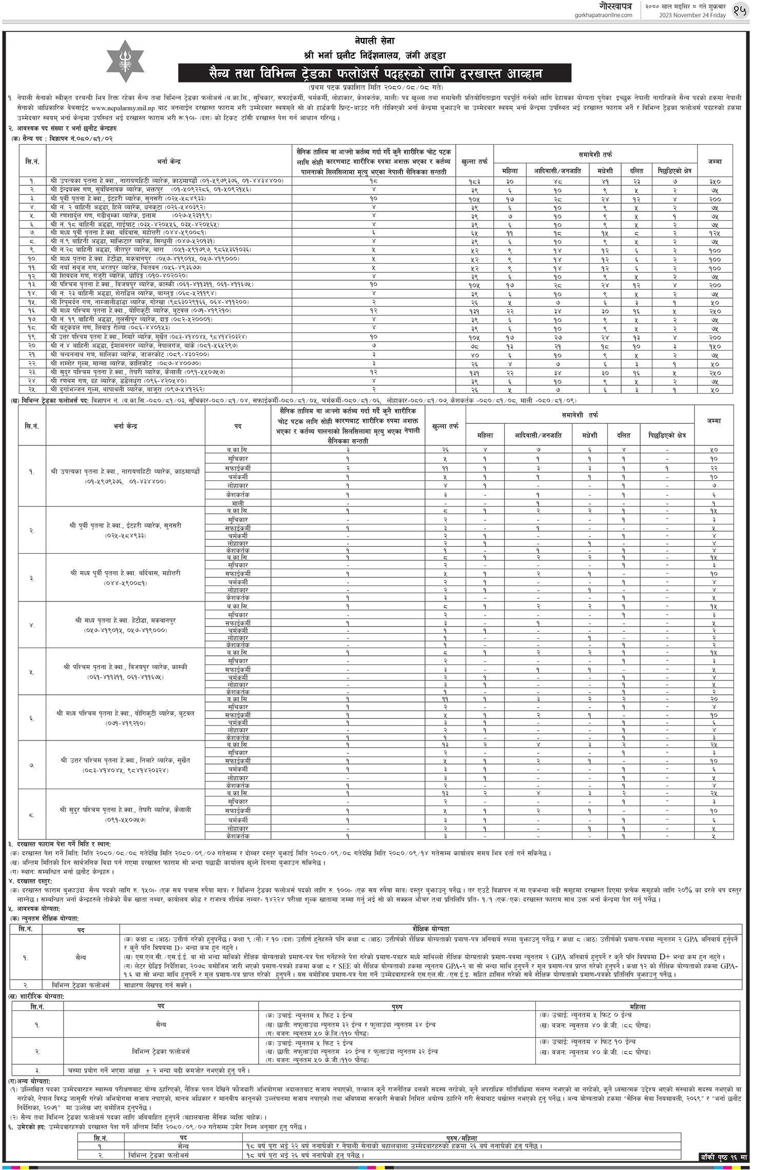 काठमाडौं । नेपाली सेनाले विभिन्न रिक्त पदपूर्तिका लागि दरखास्त आह्वान गरेको छ ।