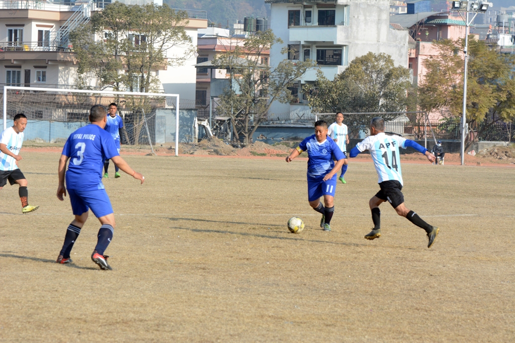सशस्त्र प्रहरी बल नेपाल प्रधान कार्यालय हलचोकस्थित एपीएफ रंगशालामा माघ ४ गते ३५ वर्ष भन्दा माथिका बरिष्ठ अधिकृत तथा अधिकृतहरुको सहभागिता संचालन भएको मैत्रीपूर्ण फुटबल प्रतियोगितामा सशस्त्र प्रहरीको तर्फबाट सशस्त्र प्रहरी महानिरीक्षक (आईजी) राजु अर्याल र नेपाल प्रहरीको तर्फबाट प्रहरी अतिरिक्त महानिरीक्षक (एआईजी) किरण बज्रचार्य टिम क्याप्टेन रहेका थिए ।