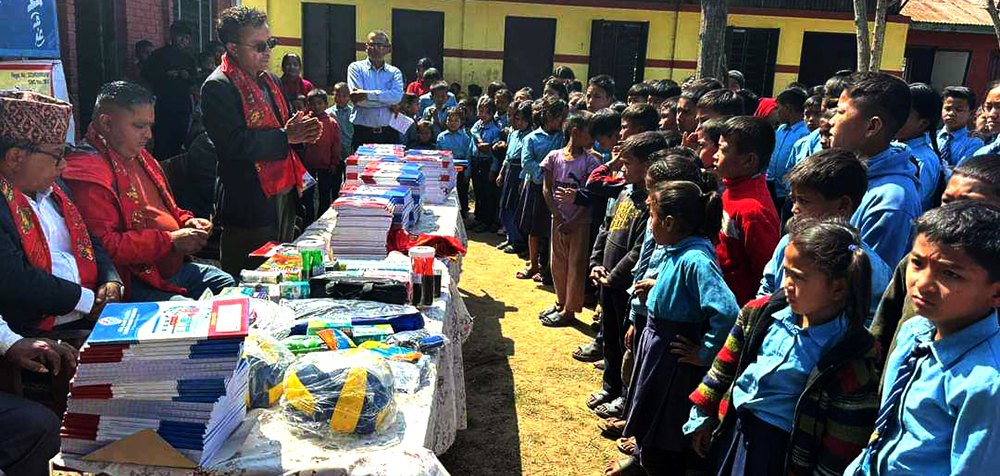 विद्यालयमा शैक्षिक तथा खेलकुद सामाग्री वितरणका साथै छात्रवृत्ति हस्तान्तरण