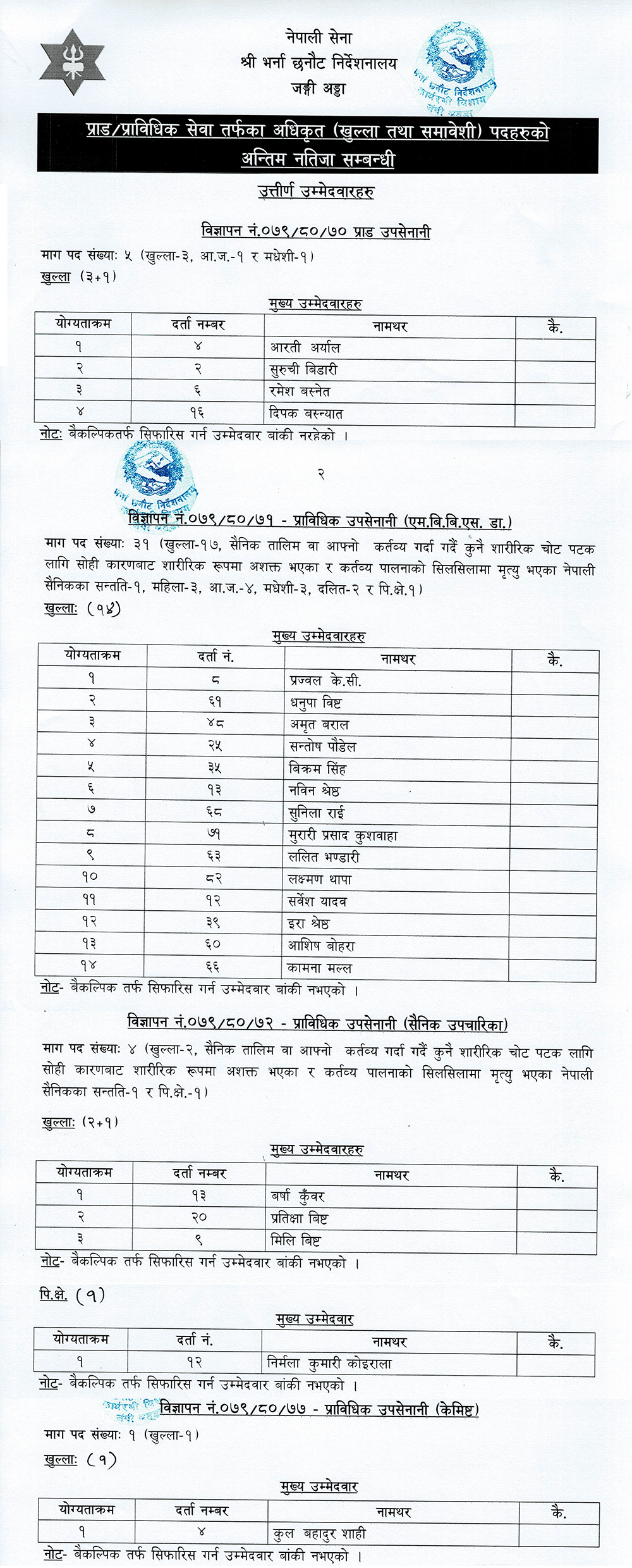 सेनाको लेफ्टिनेन्टमा यी २३ ले निकाले नाम (सूचीसहित)