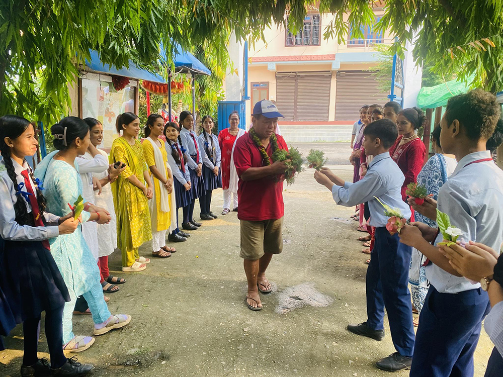 नवलपुर बोर्डिङमा महावीर पुनको भव्य स्वागत, शिक्षक र विद्यार्थीको पुनसँग अन्तरक्रिया