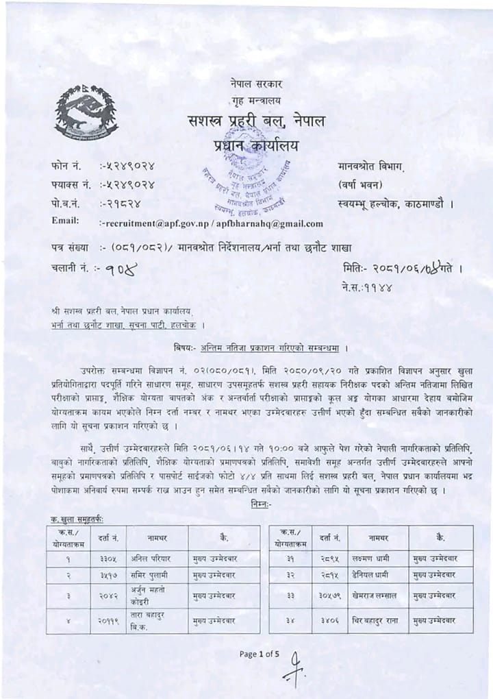 सशस्त्र असईको रिजल्ट निस्कियो, यी ९८ जनाले निकाले नाम (सूचीसहित)