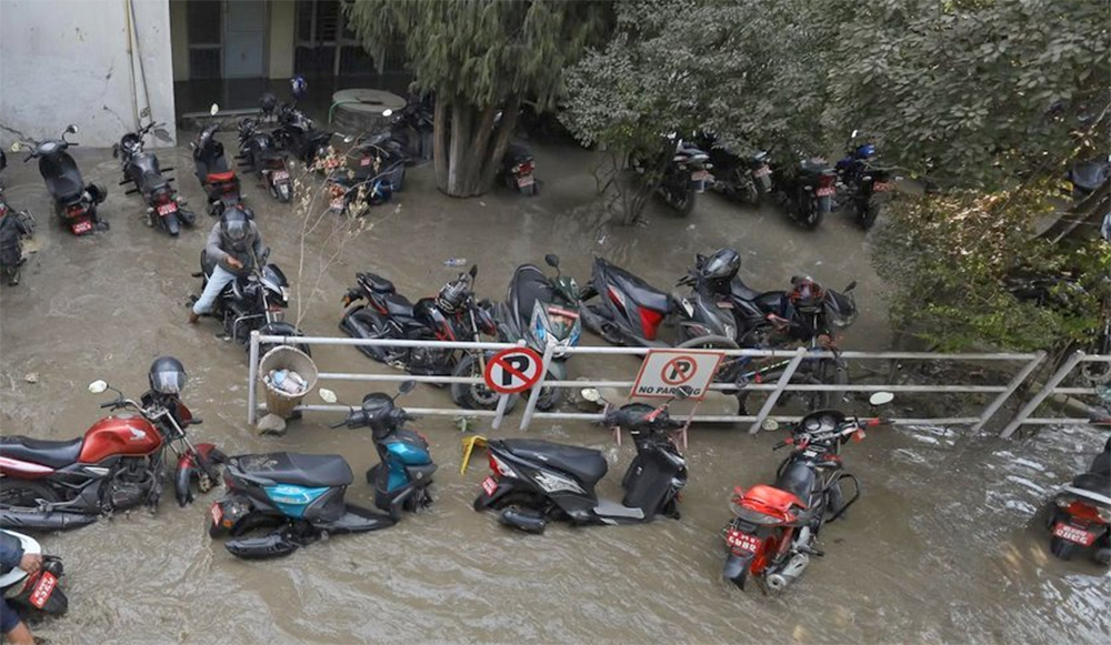 पानी जमेर पार्किङमा राखिएका सवारीसाधनहरू डुबेका छन् भने त्यहाँ आवतजावतमा पनि समस्या भएको छ ।