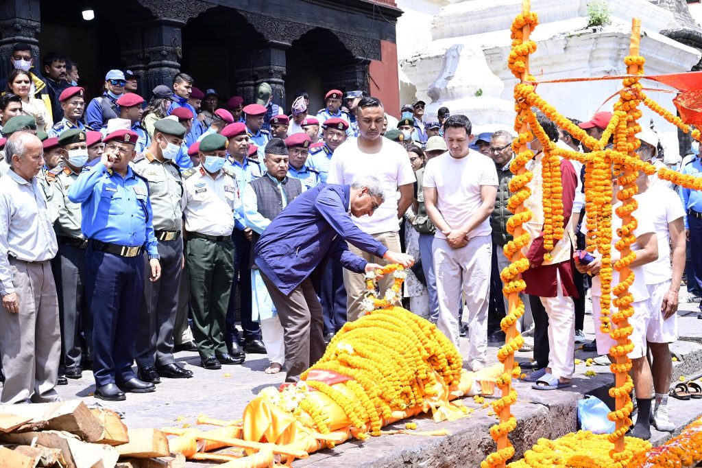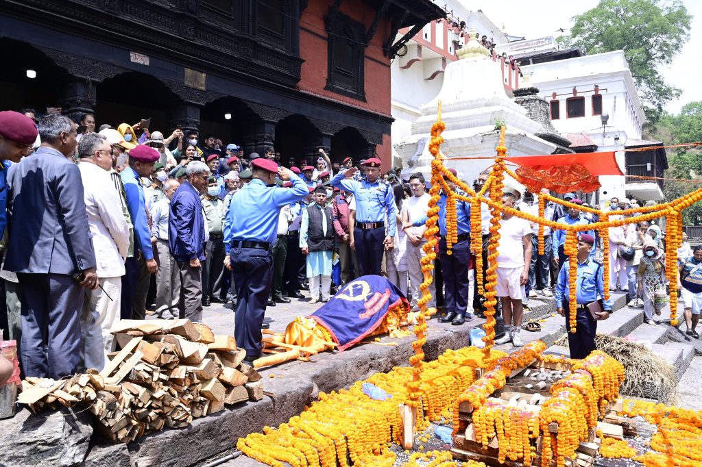 आइतवार पशुपतिनाथ आर्यघाटमा नेपाल प्रहरीको झण्डा ओढाएर राणाको अन्त्येष्टी गरिएको हो ।