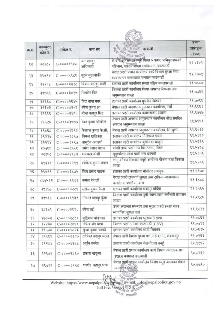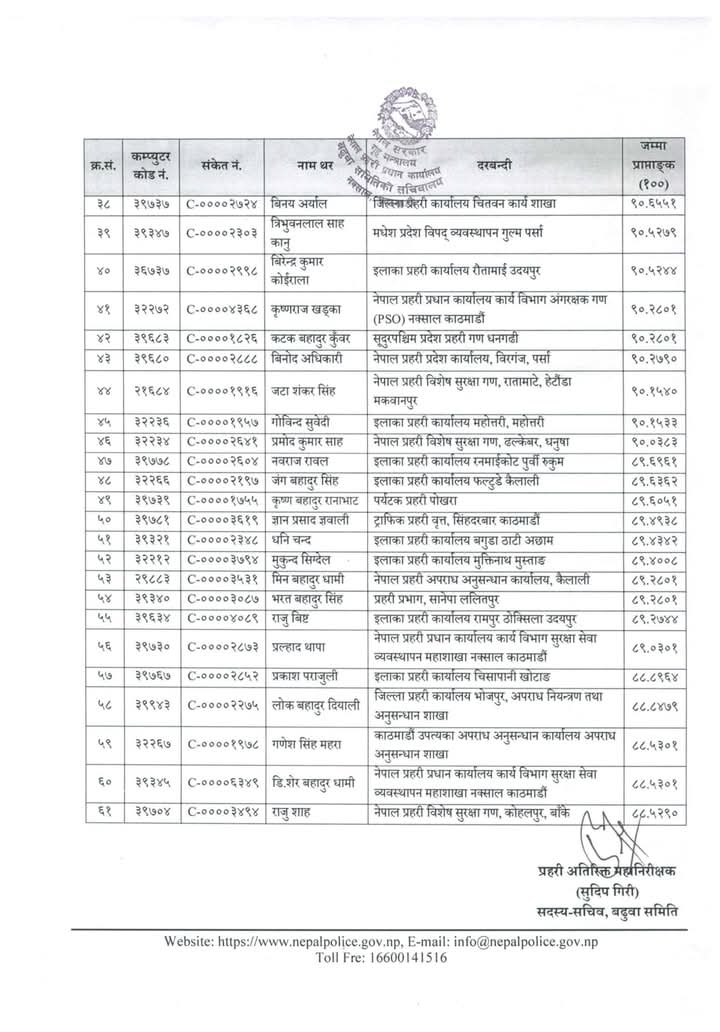 ईन्स्पेक्टरका लागि बढुवा सिफारीस, को-को भए सिफारिस? (सूचीसहित)