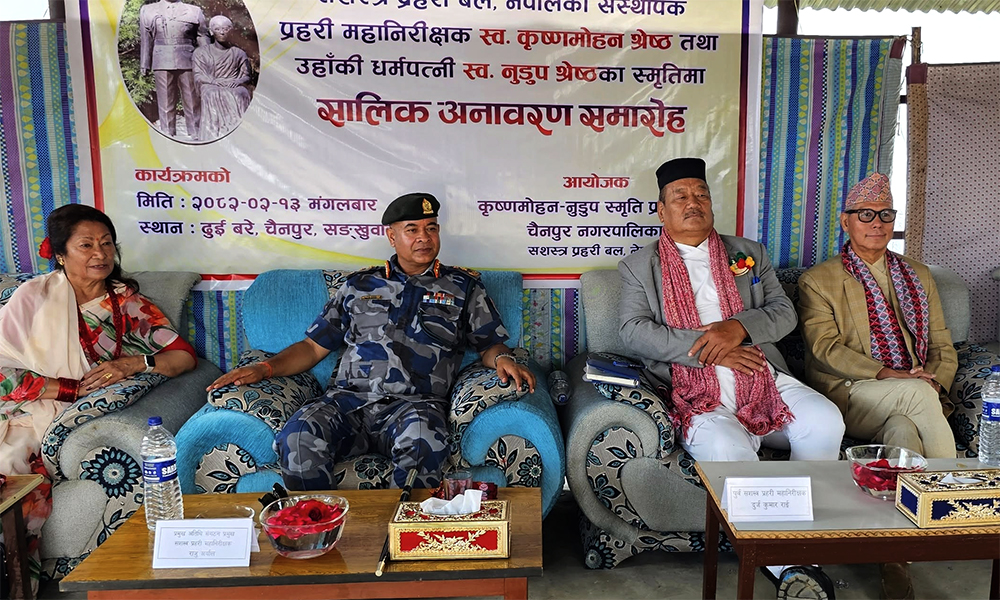 काठमाडौं । सशस्त्र प्रहरी बलको महानिरिक्षक रहेकै बखत माओवादीद्वारा मारिएका स्व. कृष्णमोहन श्रेष्ठ र उनकी धर्मपत्नी नुडुप श्रेष्ठको अर्थकदको शालिक अनावरण गरिएको छ ।