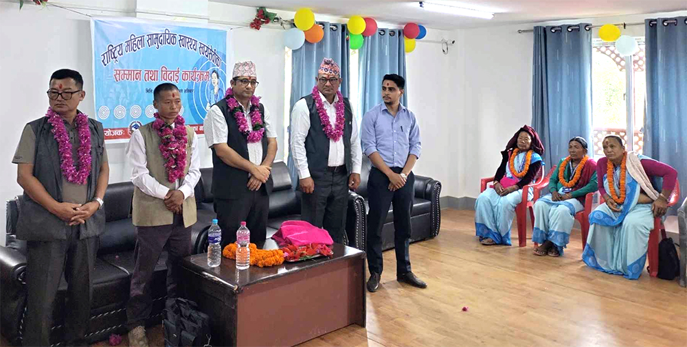 उहाँहरूले २०४९ सालदेखि महिला स्वास्थ्य स्वयंसेविकाको रूपमा काम गर्दै निरन्तर ३३ वर्षसम्म गाउँपालिकाका विभिन्न ठाउँमा सेवा पुर्याउँदै आएका थिए । ६० वर्ष उमेर पुगेपछि नियमअनुसार उनीहरूलाई गाउँपालिकाले सम्मानका साथ बिदाइ गरेको हो।