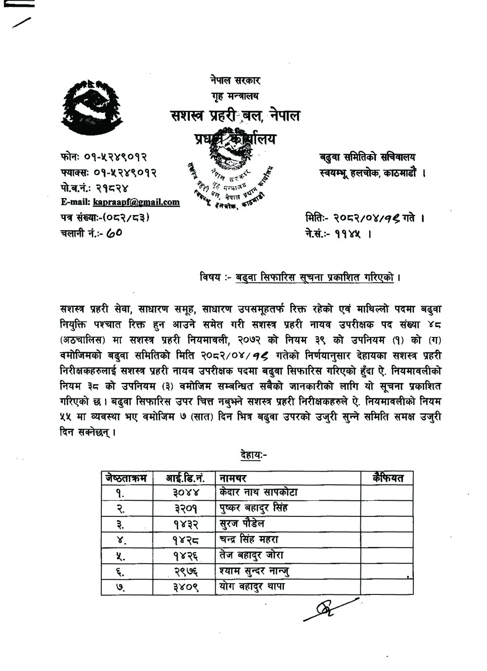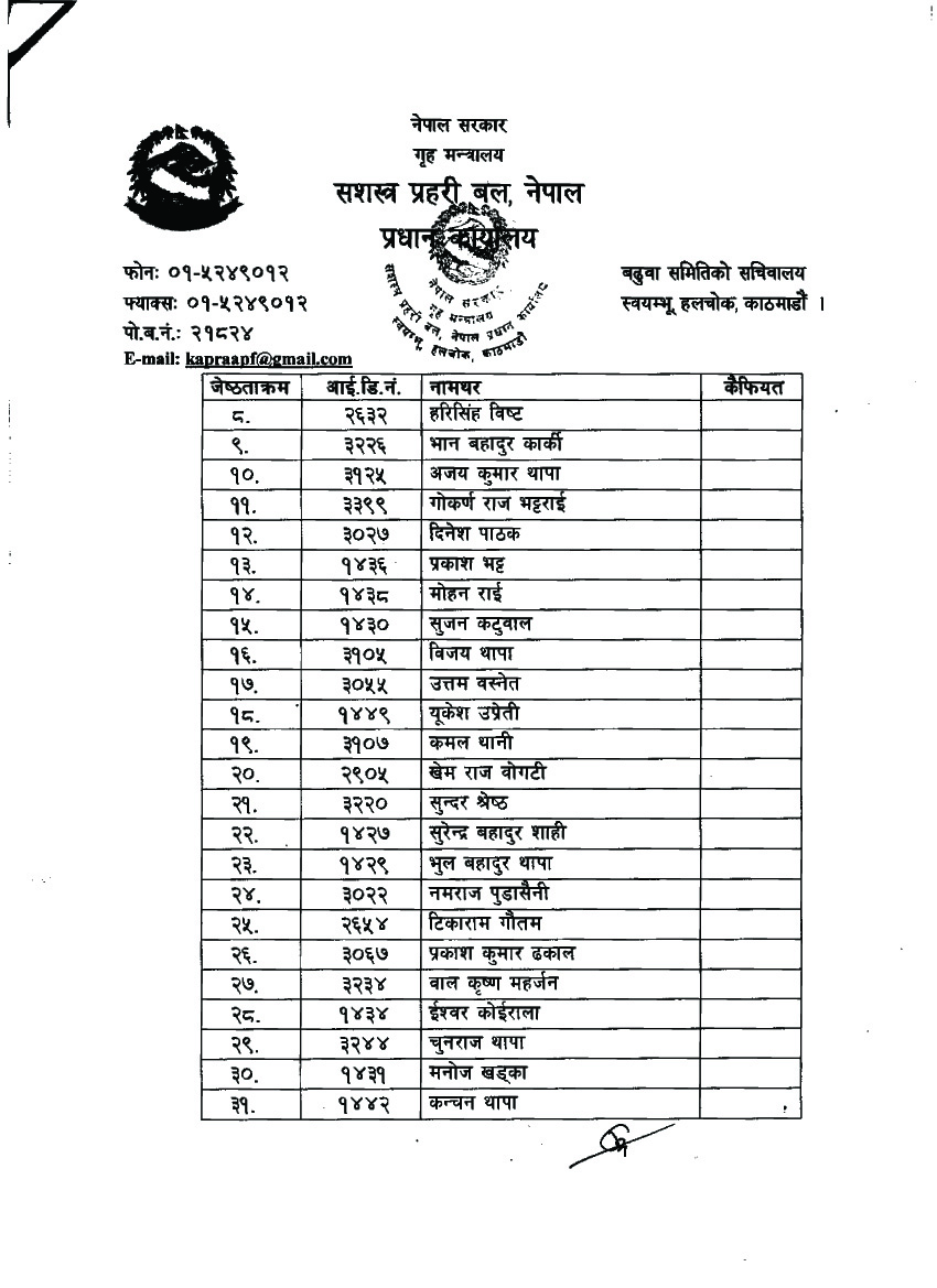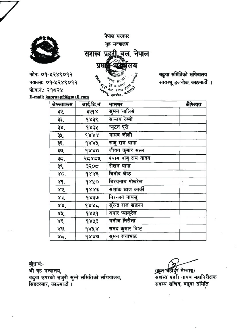 सशस्त्रका यी ४८ इन्स्पेक्टर हुने भए डिएसपी, को–को भए सिफारिस (नामसहित)
