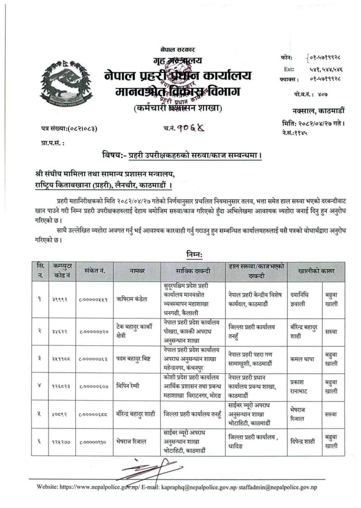 ९ एसपी सरुवा, फेरिए ४ जिल्लाका कमाण्डरहरु (सूचीसहित)