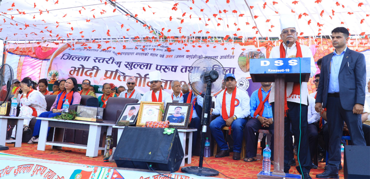 नवलपुरको कावासोती–१६ डण्डामा थारू राष्ट्रिय सङ्ग्रहालय अध्ययन केन्द्रको आयोजनामा आयोजित जिल्ला स्तरीय भौदी खेल प्रतियोगितामा सहभागी भइ सम्बोधन गरेका अध्यक्ष प्रचण्डले थारू समुदायका अधिकार सुनिश्चित गर्न जनयुद्धले गरेको योगदानलाई सम्पूर्ण थारु समुदायले आत्मसाथ गर्नुपर्ने आवश्यकता औल्याए ।