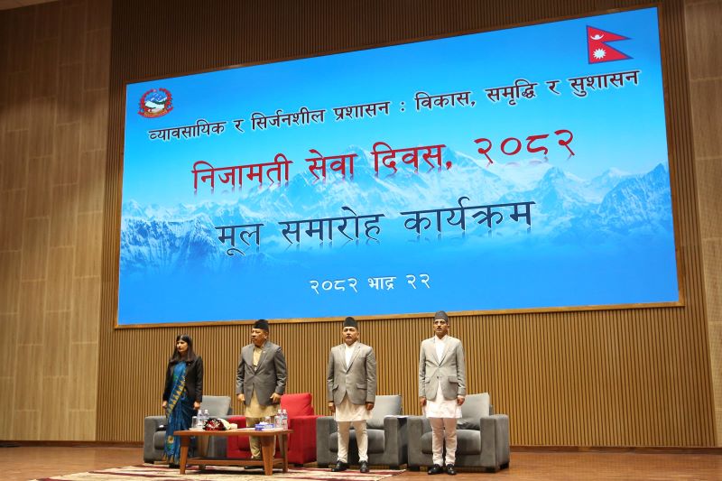 आज २२ औं निजामती सेवा दिवस। ‘व्यावसायीक र सिर्जनशिल प्रशासनः विकास, समृद्धि र शुसासन’ भन्ने नाराका साथ बिभिन्न कार्यक्रम गरी मनाउँदैछ।