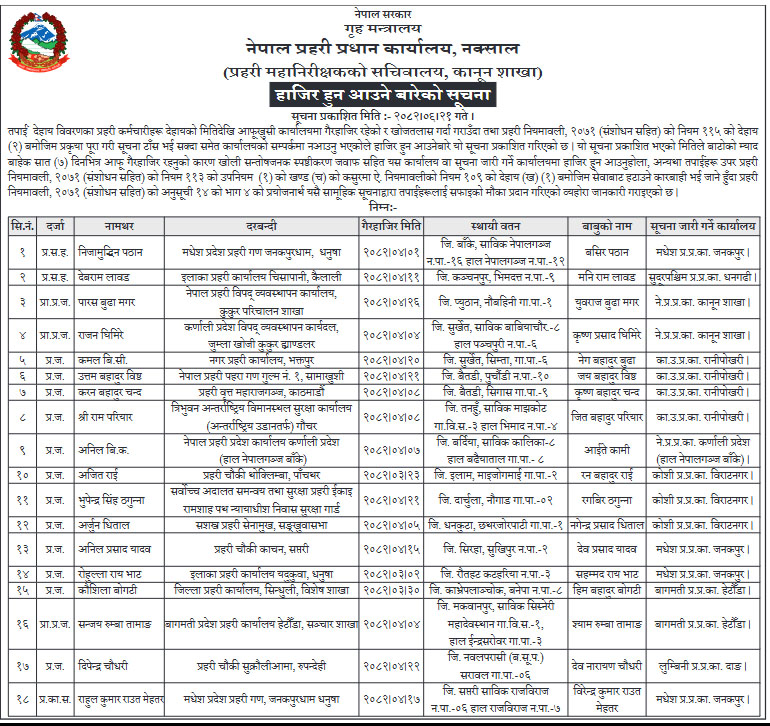 यी १८ प्रहरी भए ‘बेपत्ता’, सातदिनभित्र सम्पर्कमा नआए जागिर चट् !