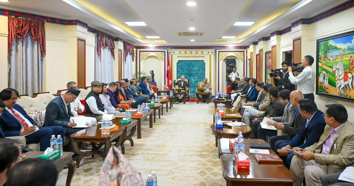 राष्ट्रपति पाैडेलले बोलाएको सर्वदलीय बैठक सुरू, प्रधानमन्त्री कार्की पनि सहभागी