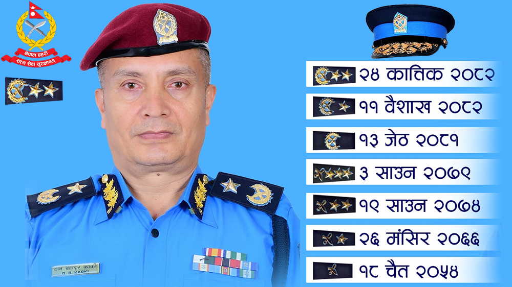 काठमाडौं । नेपाल प्रहरीको ३३औँ महानिरीक्षक (आईजीपी) मा दानबहादुर कार्कीलाई नियुक्त भएका छन् । सोमबारको मन्त्रिपरिषद् बैठकले कार्कीलाई प्रहरी प्रमुखमा — विस्तृतमा